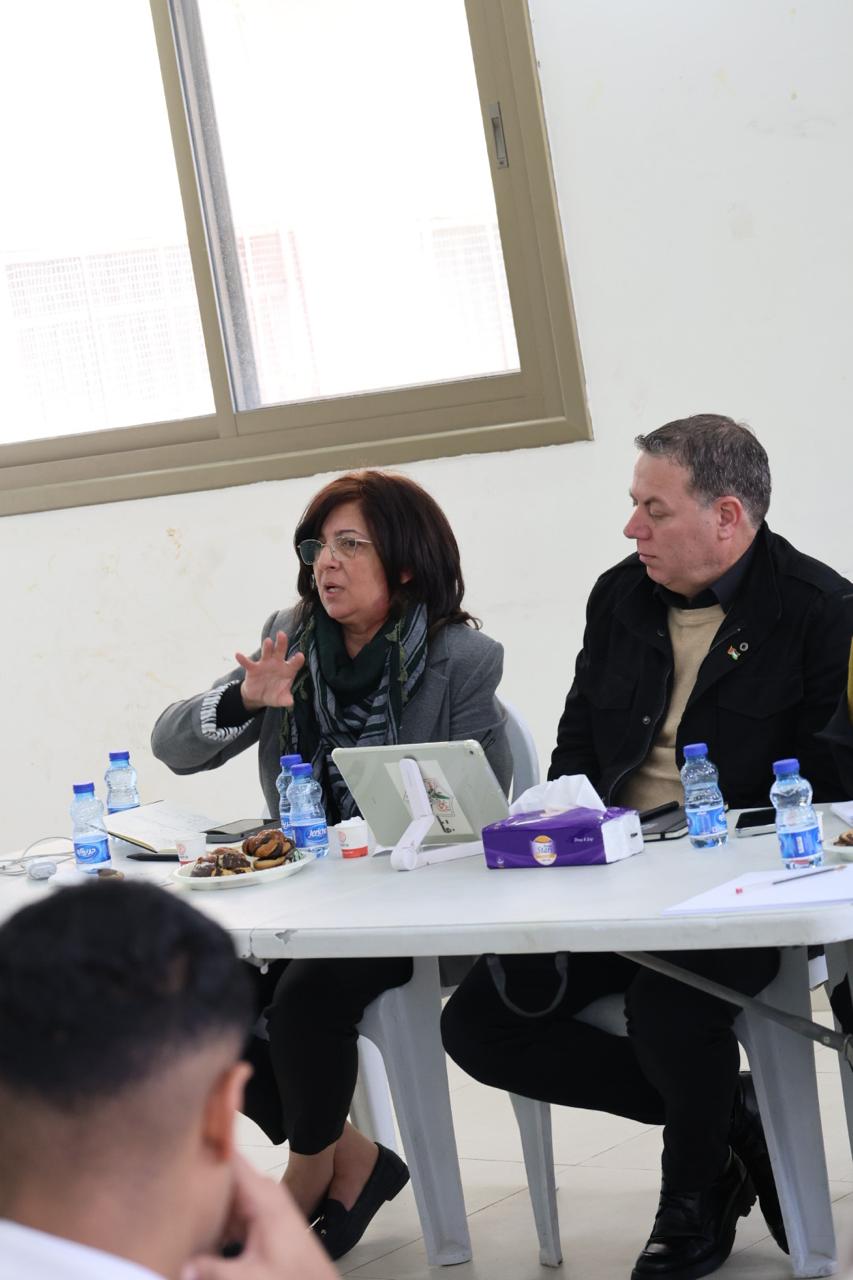 The meeting featured a distinguished group of experts and activists, including the women’s rights activist and member of the Gender Forum, Ms. Rima Nazzal; the Public Relations Officer at the Central Elections Commission, Ms. Maisam Al-Barghouthi; the representative and official spokesperson of Fatah Movement, Mr. Abdel Fattah Dawla; the Ramallah Municipal Council member, Ms. Hanan Qaoud; and youth activist Mohammad Sabra.
