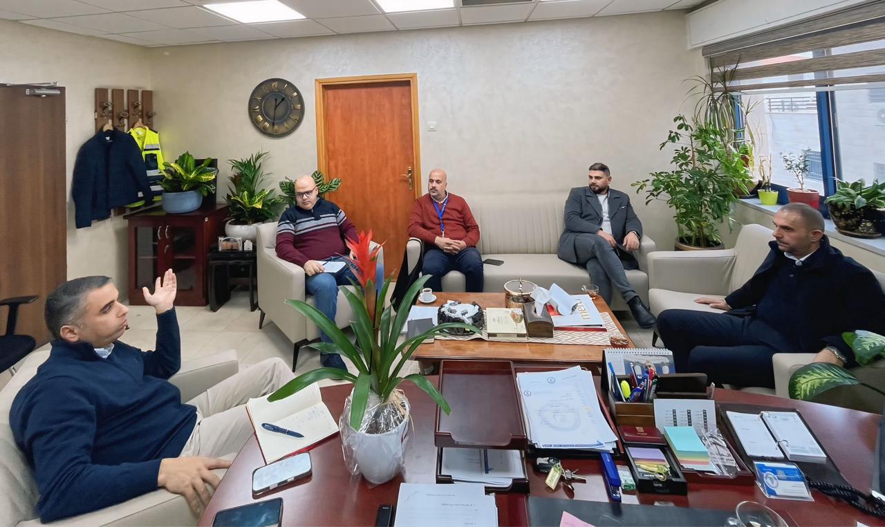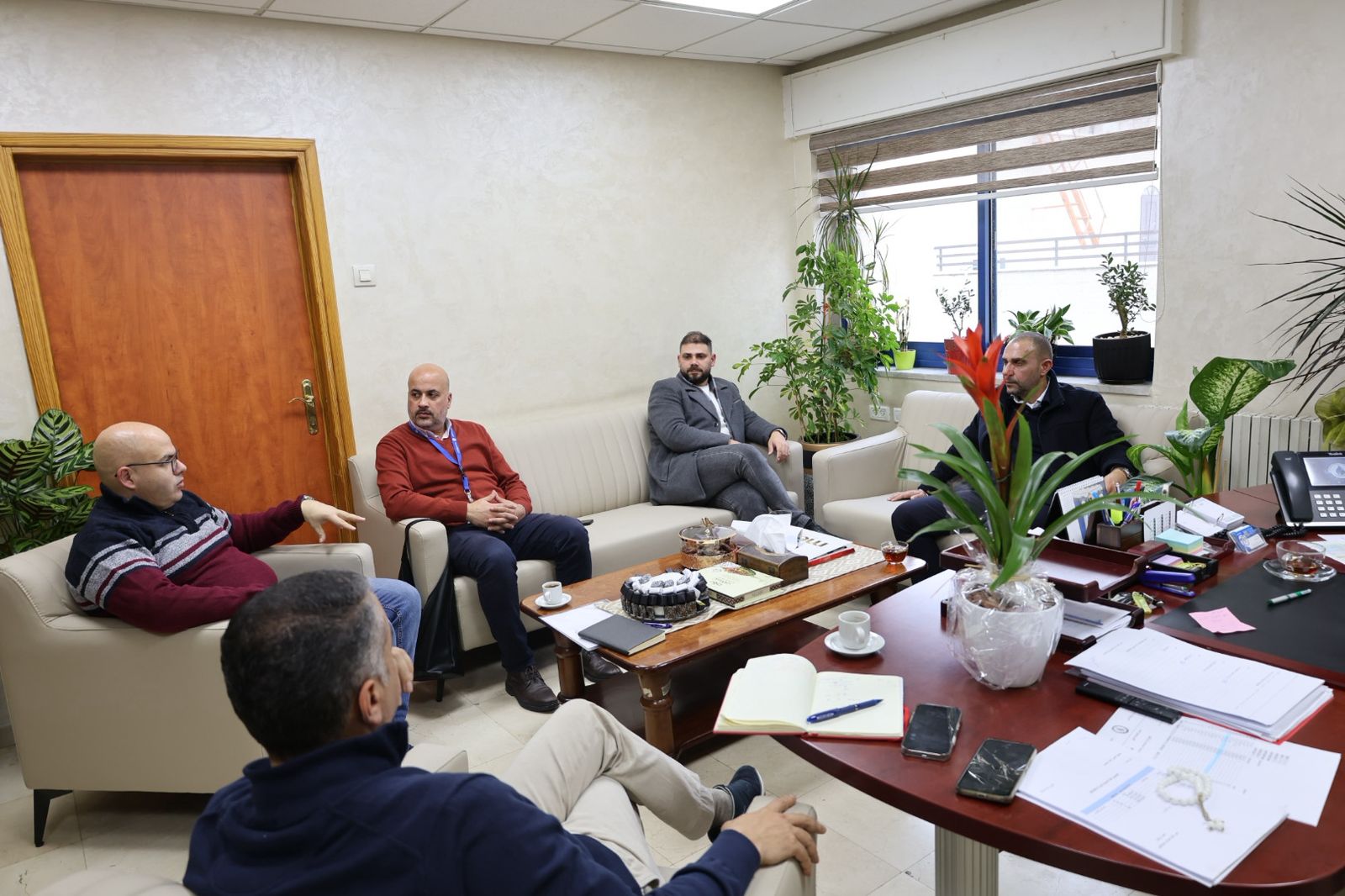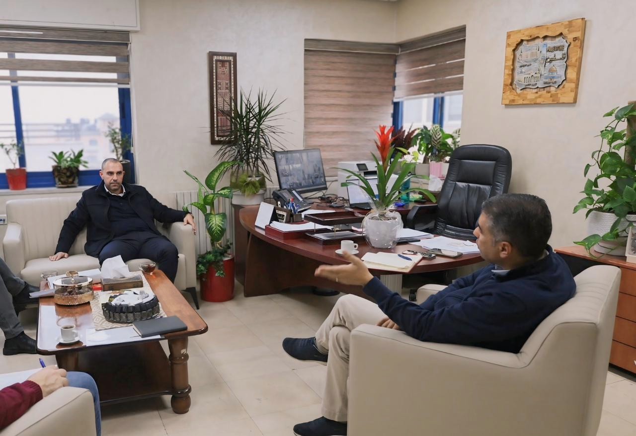 During the visit, the Mayor congratulated Eng. Thaer Jalloud on his appointment to his new position, wishing him continued success in his duties. In turn, Eng. Jalloud welcomed the delegation and emphasized the importance of the visit in enhancing partnership and joint cooperation to better serve citizens and improve the quality of services.